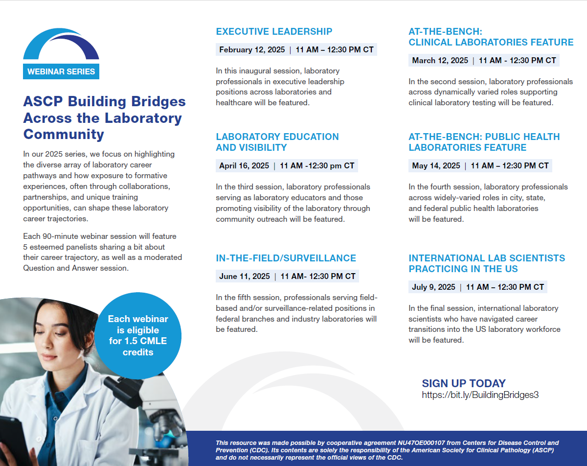 Building Bridges Current Sessions | ASCP's Support of the CDC OneLab™ Initiative