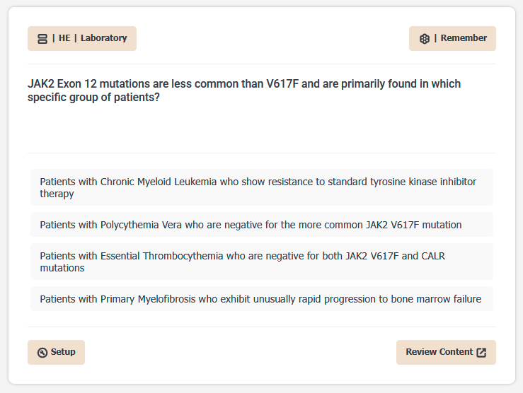 The tool is a web application that focuses questions on topics associated with the BOC Content Guidelines. Currently, only Hematology topics are represented (more content areas coming). Each question presented is categorized according to a Bloom taxonomy (click top right button for more info) to mimic a range of question difficulties. Customization features currently developed are under "Setup" (bottom left) and "Topics" (top left) buttons. This tool is in the early development phase, so please provide your feedback and critiques...